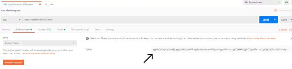 - Và sau đó ấn nút send để gửi lại request sau khi được thêm mã token