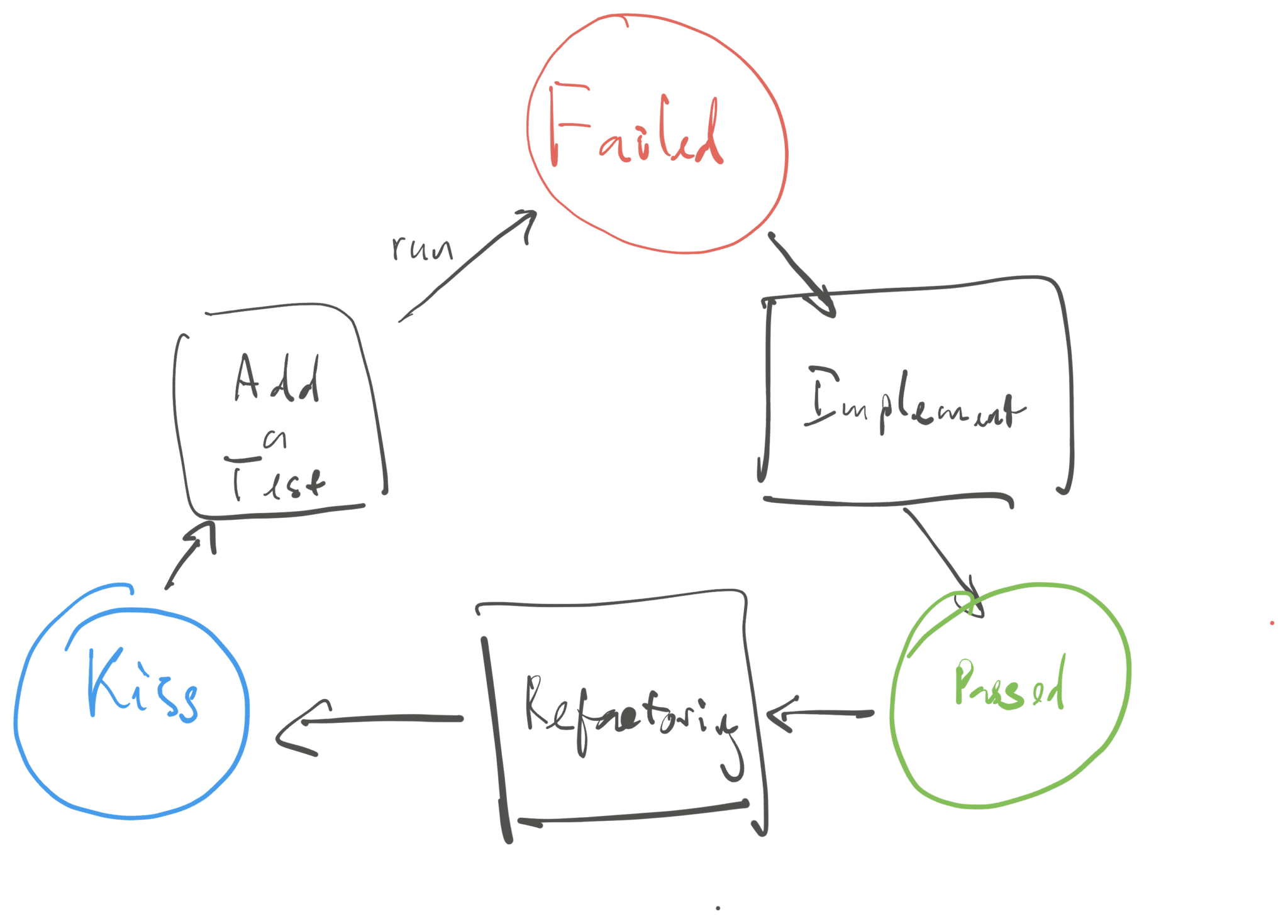 - RED: Quá trình phát triển bắt đầu bằng thao tác Add a Test: bổ sung một ca kiểm thử. Chưa có mã triển khai tương ứng nên ca kiểm thử này sẽ Failed. Nhưng ngay từ thời điểm đó ca kiểm thử đã có tác dụng mô tả yêu cầu cũng như thiết kế của mã triển khai.