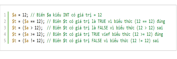 Như bài trước tôi đã đề cập về các kiểu dữ liệu trong php, kiểu boolean có giá trị là FALSE cho tất cả các giá trị bằng 0, ký tự rỗng hoặc null. Để có thể so sánh 2 toán hạng ta làm như sau ($a == $b). Các bạn lưu ý rằng phép toán mà có 1 dấu bằng là phép gán, còn 2 dấu bằng là phép so sánh.