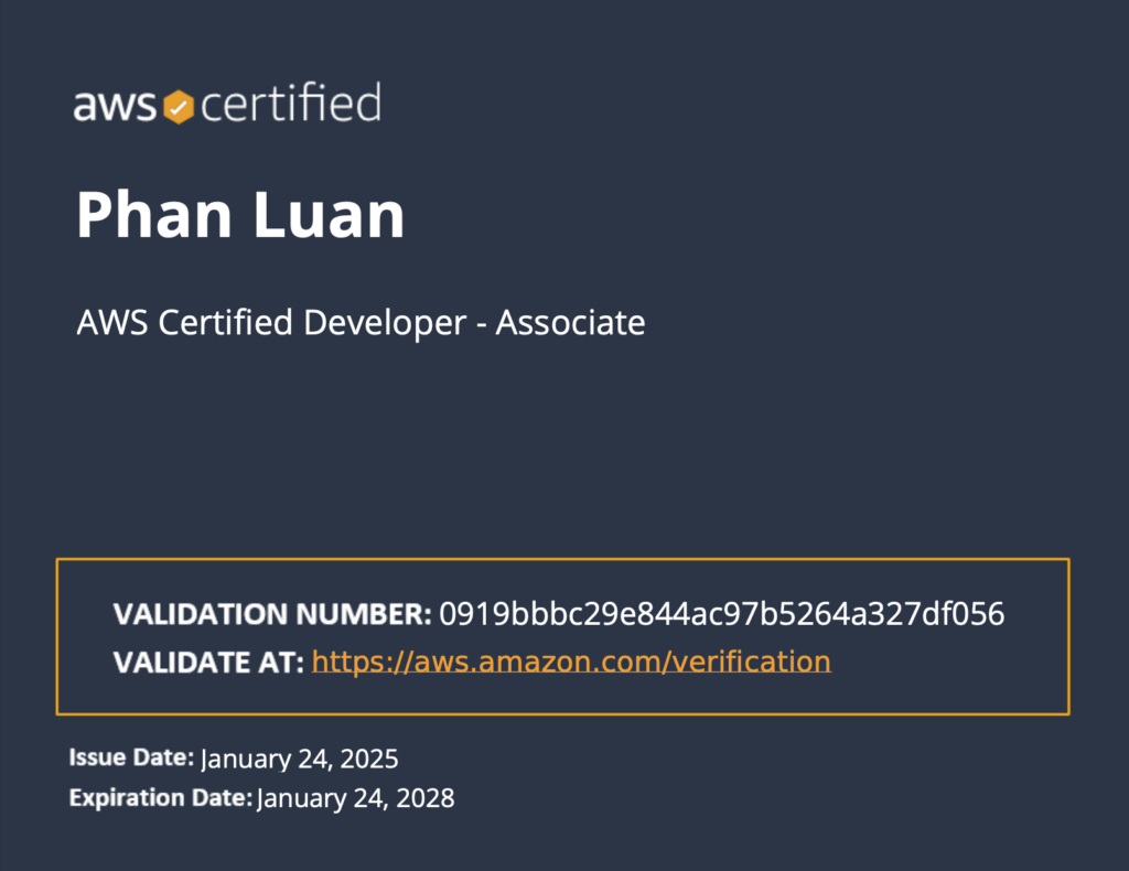 Xin chào mọi người! Mình là Luân, hiện tại đang vừa là dev, vừa là giảng viên tại CodeGym. Mình vừa lấy chứng chỉ AWS Certified Developer – Associate được một thời gian. Hôm nay mình muốn chia sẻ lại hành trình ôn thi, những gì mình đã học, đã làm, và một vài mẹo nhỏ mà mình nghĩ sẽ hữu ích cho các bạn đang chuẩn bị cho kỳ thi này. Hy vọng bài viết này sẽ hữu ích và giúp các bạn tự tin hơn trên con đường chinh phục chứng chỉ AWS.