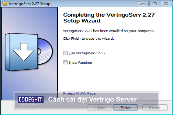Bước 8: bạn hãy chọn Run Vertrigo Server khi cài đặt xong và chọn tiếp Finish. Hãy nhớ rằng trước khi nhấn Finish bạn phải tắt skype đi nhé.