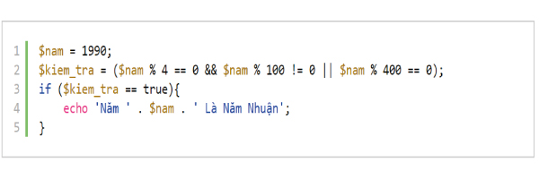 Lúc này biểu thức ($nam % 4 == 0 && $nam % 100 != 0 || $nam % 400 == 0) sẽ thành: