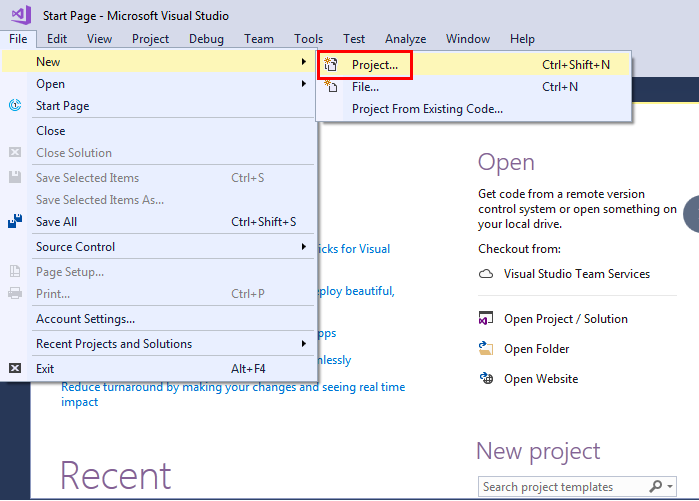 Để tạo mới một Project, bạn chọn File -> New -> Project như hình bên dưới: