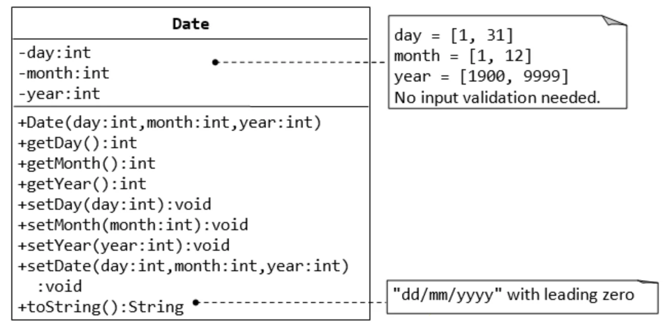 Hãy xây dựng lớp Date theo sơ đồ lớp sau: