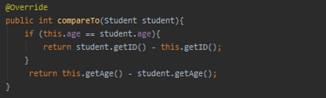Tùy vào tiêu chuẩn mà ta sử dụng để so sánh các phần tử mà ta sẽ override lại code vào trong phương thức compareTo(), và đa số là dựa vào giá trị của biến instance của chúng.