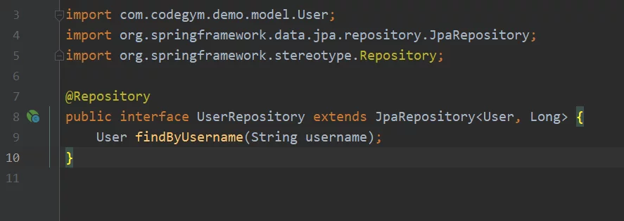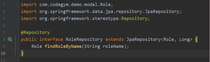 - Sau khi tạo xong 3 model trên ta sẽ tạo 2 repository có tên là UserRepository và RoleRepository như sau: