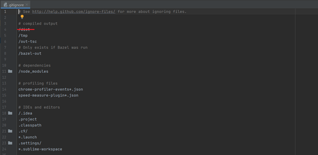 Và cuối cùng các bạn vào file .gitignore và xóa bỏ dòng /dist