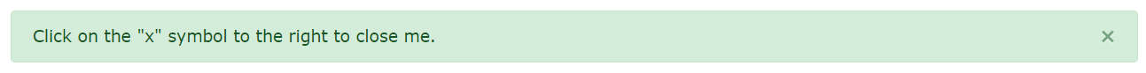 <div class="alert alert-success alert-dismissible"> <button type="button" class="close" data-dismiss="alert">×</button> <strong>Success!</strong> Indicates a successful or positive action. </div>