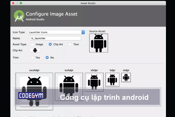 Đây là một công cụ chính chủ của Android Studio. Công cụ giúp import một icon dạng Bitmap (được tạo sẵn theo đúng tiêu chí của Material Design) vào ứng dụng của bạn một cách dễ dàng. Nó tạo ra một tập hợp các biểu tượng ở độ phân giải phù hợp cho từng mật độ pixel mà ứng dụng của bạn hỗ trợ.