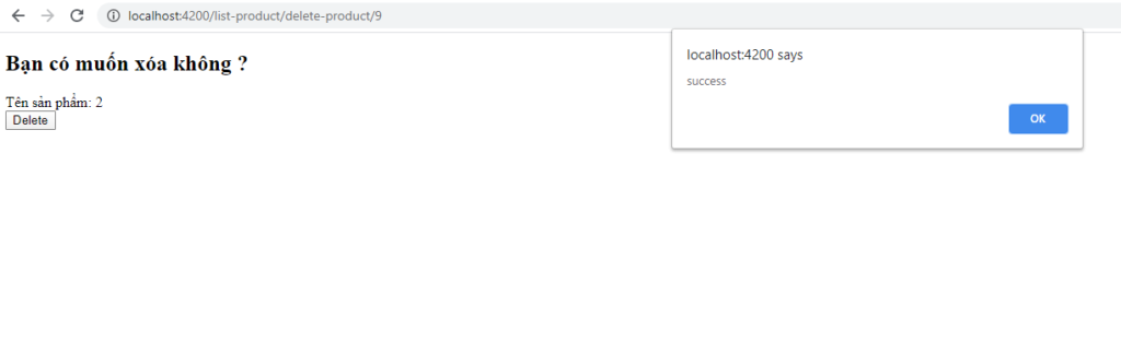 - Giao diện sau khi xóa thành công