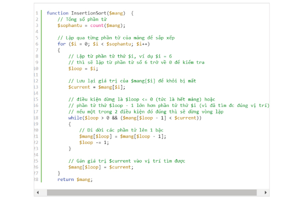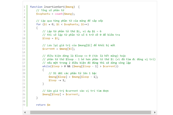 Bài 18: Thuật toán sắp xếp chèn trong PHP