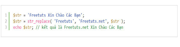 2: $str = str_replace( array('Freetuts', 'Xin Chào'), array('Freetuts.net', 'Hello'), $str );.