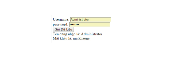 4;Cuối cùng Bạn refresh lại trình duyệt rồi nhập tên đăng nhập và mật khẩu vào, sau đó nhấn vào button “Gửi Dữ Liệu” và nhìn thành quả của mình nhé.