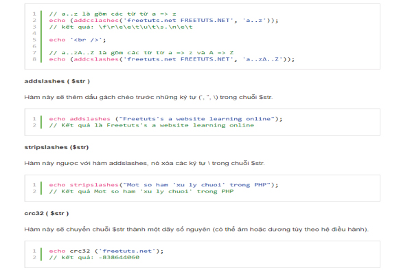 Dưới đây là các hàm chúng ta hay sử dụng để xử lý chuỗi trong PHP.