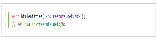 Hàm này chuyển các thể html trong chuỗi $str sang dạng thực thể của chúng (html sẽ ko còn tác dụng nên bạn có thể echo ra bên ngoài).