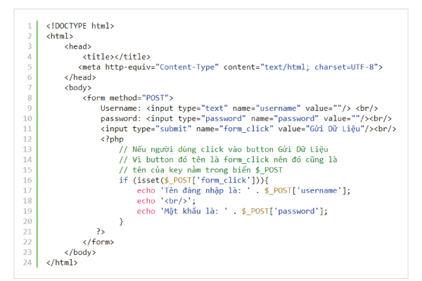 1: Bạn tạo một file post.php nằm trong thư mục WWW của Vertrigo Server hay thư mục htdocs của Xampp, sau đó nhập đoạn code tạo form này vào: