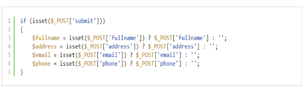 Nếu sử dụng hàm isset() thì ta sẽ làm như sau: