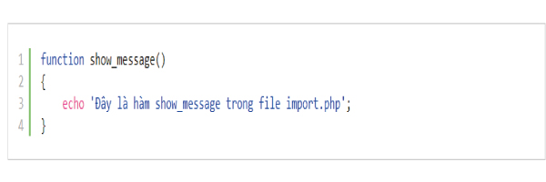 Chạy file index.php lên bạn sẽ thấy nó xuất ra câu thông báo “Đây là hàm show_message trong file import.php“.