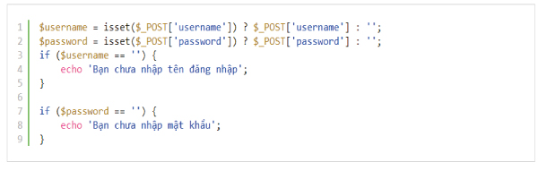 Vi dụ: Ta kiểm tra dữ liệu khi người dùng đăng nhập.
