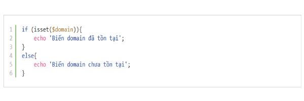 Ví dụ: Kiểm tra biến $domain có tồn tại hay không.