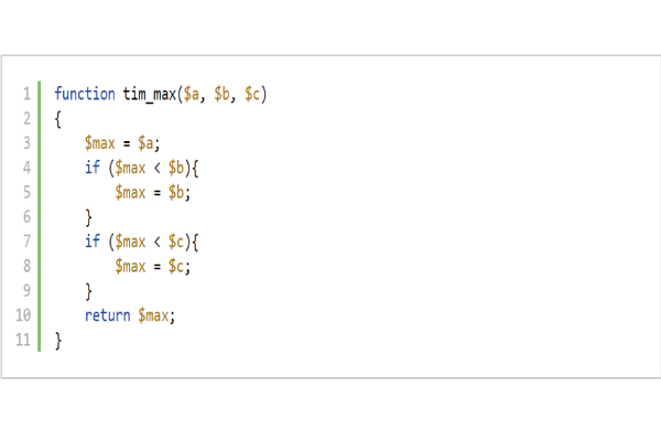Cuối cùng biến $max chứa giá trị lớn nhất. Sau đây là hàm tìm giá trị lớn nhất: