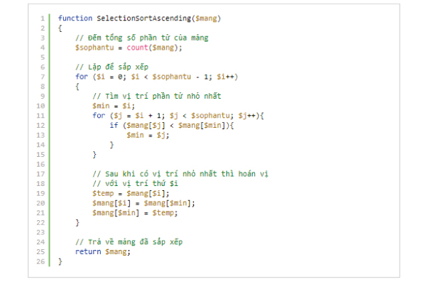 Bài 17: Thuật toán sắp xếp chọn trong PHP
