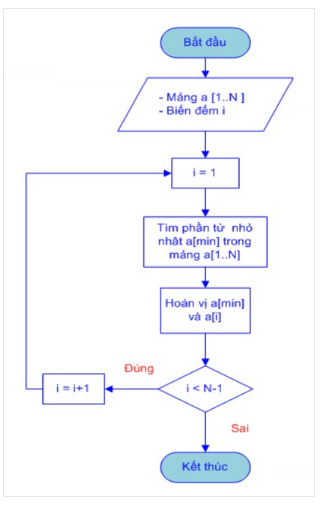 1: Duyệt từ vị trí thứ 1 đến vị trí cuối cùng. Tìm vị trí phần tử nhỏ nhất sau đó hoán vị với vị trí số 1. Sau đó loại vị trí số 1 ra khỏi danh sách sắp xếp vì nó đã được đặt đúng vị trí
