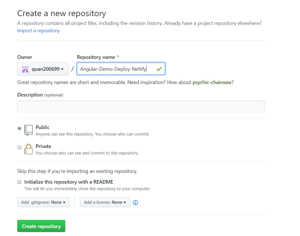 - Sau khi tạo xong các bạn hãy push dự án Angular của mình lên repository này