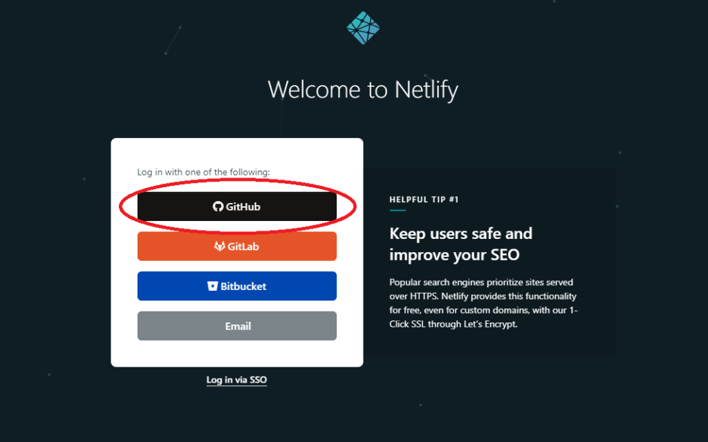 - Khi dự án của bạn đã được đưa lên github thì tiếp theo các bạn hãy truy cập vào trang sau https://www.netlify.com/ và dùng tài khoản github của mình để đăng nhập