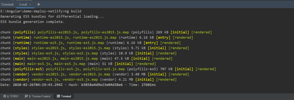 - Các bạn bật cửa sổ terminal của webstorm lên và gõ lệnh ng build
