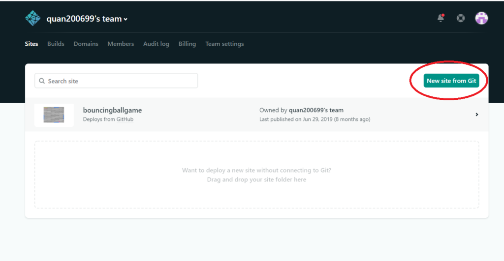 - Sau đó các bạn click vào new site from git để tạo mới một trang web trên netlify