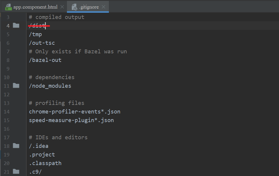 - Và các bạn vào file .gitignore và xóa dòng /dist