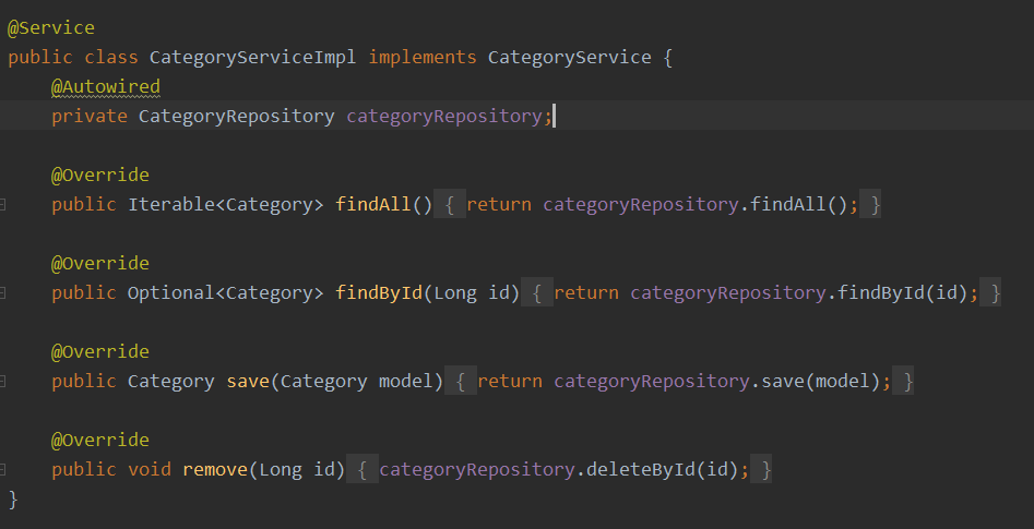 - CategoryService và CategoryServiceImpl