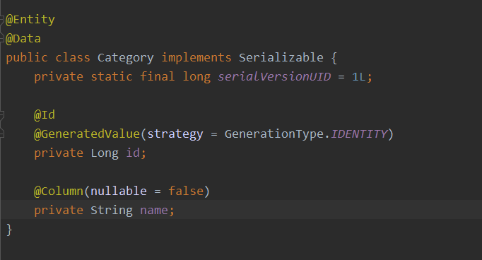 - Tạo một entity có tên là Category