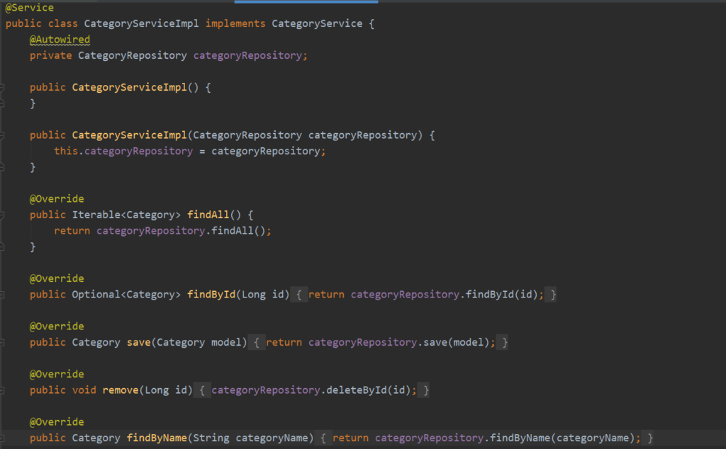 Trước hết chúng ta tạo CategoryRepository và CategoryService như sau: