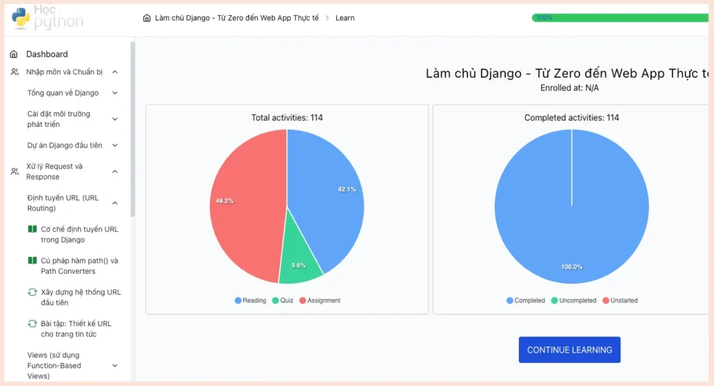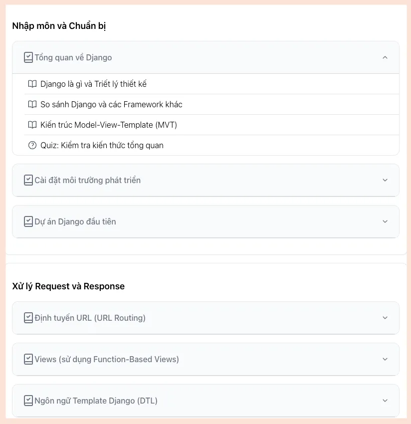 Khóa học Làm chủ Django – Từ Zero đến Web App Thực tế được thiết kế dành riêng cho bạn. Chúng tôi sẽ dẫn dắt bạn đi qua một hành trình hoàn chỉnh, từ việc cài đặt những dòng code đầu tiên cho đến khi có trong tay một ứng dụng web hoàn thiện, sẵn sàng để triển khai.