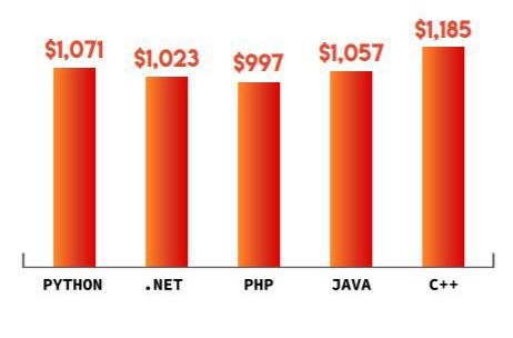 Ngoài việc được phân theo năm kinh nghiệm, mức lương của lập trình viên cũng được chia thành nhiều ngạch khác nhau. Với những ngôn ngữ “hot”, mức lương cũng sẽ cao hơn. Theo đó, 5 ngôn ngữ lập trình có mức lương trung bình cao nhất trong nước hiện nay phải kể đến là: C++, Python, Java, .Net và PHP. Trong đó, lập trình viên .NET có mức lương trung bình là 1023$ (tương đương hơn 23 triệu đồng).