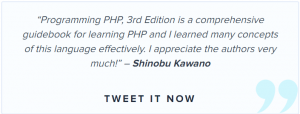 “Lập trình PHP, bản thứ 3 là một cuốn sổ tay toàn diện để học PHP và bản thân tôi đã học được rất nhiều khái niệm của ngôn ngữ này một cách hiệu quả. Tôi rất cảm kích tác giả đã viết cuốn sách này” – Shinobu Kawano (Tài liệu học lập trình web PHP)