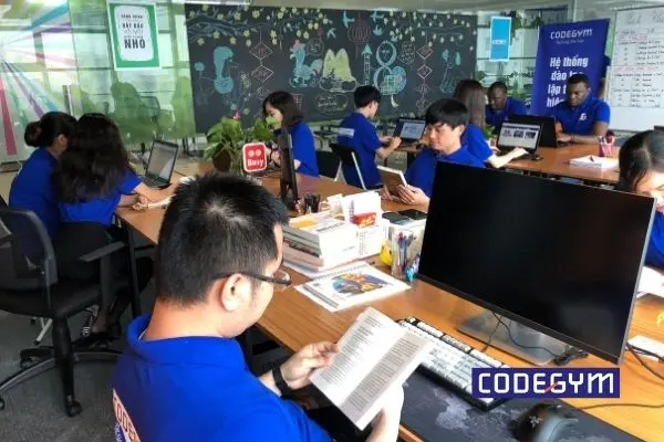 - Cường độ huấn luyện 8 giờ/ ngày. Bạn sẽ chỉ dành thời gian tập trung vừa học kiến thức vừa thực hành tại CodeGym.