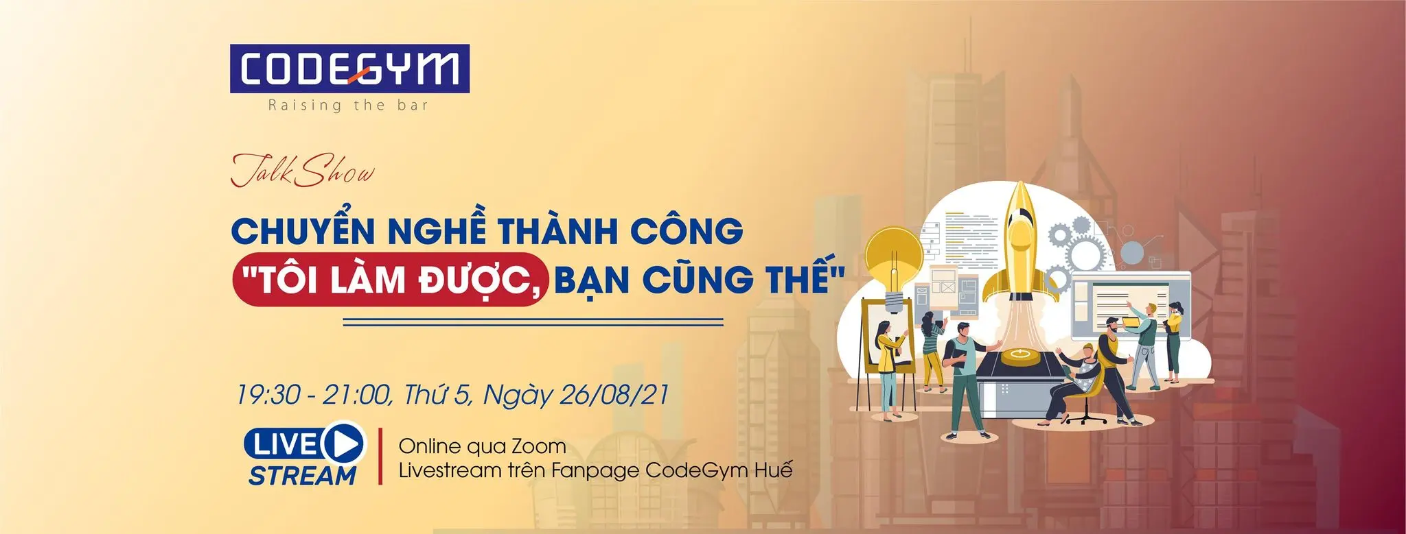 Hiểu được nỗi lo của người lao động, đồng thời với mong muốn mang đến cơ hội “đổi hướng đi” cho nhiều cá nhân vẫn đang băn khoăn tìm kiếm lối thoát trong thời điểm dịch bệnh khó khăn, CodeGym Huế đã lên kế hoạch tổ chức một Talkshow có thể giúp bạn nắm bắt xu thế thị trường công nghệ. Đồng thời, cung cấp những thông tin hữu ích, giải đáp tất tần tật thắc mắc về việc làm ngành Công nghệ thông tin cũng như nhu cầu “khát nhân lực” của thị trường CNTT hiện nay…
