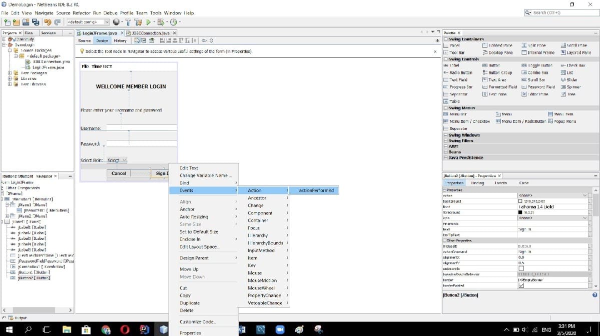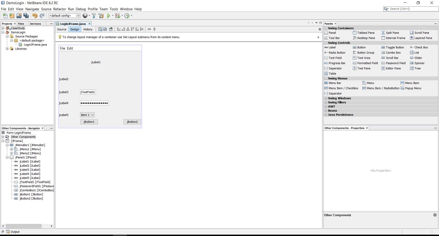 • Nhập thông tin Password: Password Field => Change Variable Name: jPasswordFieldPassword