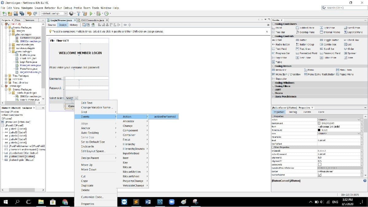 • Nhập thông tin User: Text Field => Change Variable Name: jTextFieldUsername