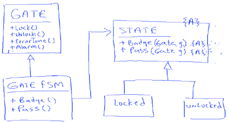 “Lưu ý các biến tĩnh công khai ở các lớp State, và các phương thức không nội bộ và biến của Gate và GateFSM.”