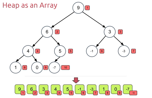 Biến mảng thành một cây nhị phân (max-heap hoặc min-heap).