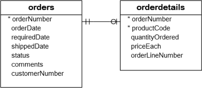 Quan sát bảng orders và orderdetails.