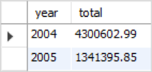select year(orderDate) as year, sum(quantityOrdered * priceEach) as total from orders inner join orderdetails on orders.orderNumber = orderdetails.orderNumber where status = 'shipped' group by year having year > 2003