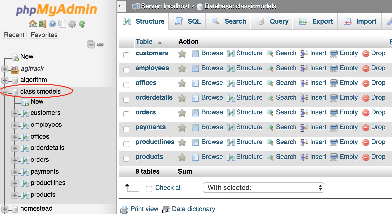 mysqldump -u homestead -p classicmodels > ~/Projects/demo/classicmodels_backup.sql