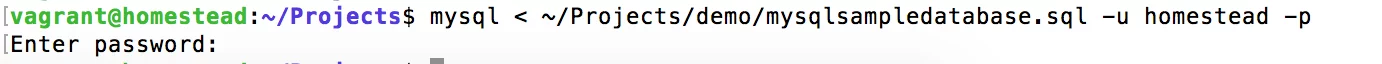 mysql < ~/Projects/demo/mysqlsampledatabase.sql -u homestead -p