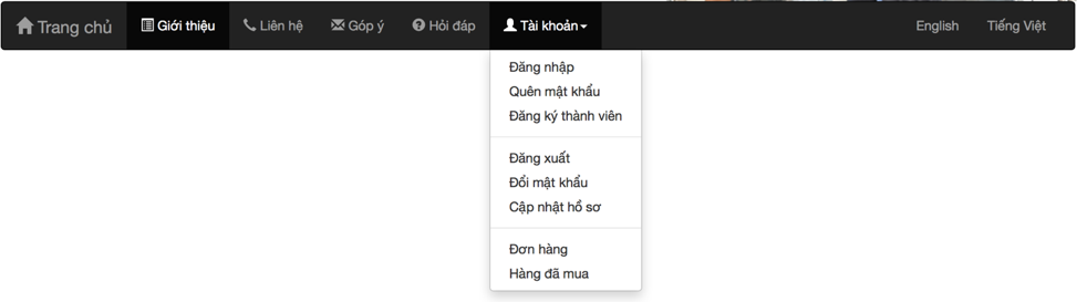 – Bổ sung các icon vào các mục menu như hình trên. Để bổ sung menu bạn cần thêm <span class = ?> sau đó vào https://getbootstrap.com/docs/3.3/components/#glyphicons lấy các icon phù hợp.