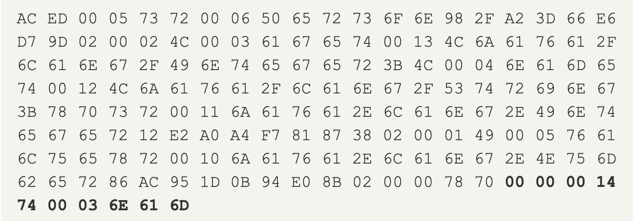 - 0x78: TC_ENDBLOCKDATA. Đánh dấu block dữ liệu cuối cùng của class Person